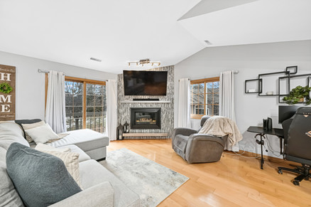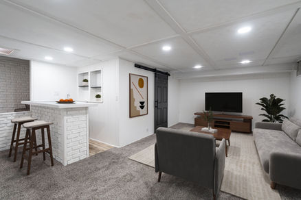 Finished lower-level space ideal for den, rec room, or flex use